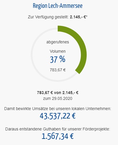 Was für ein großartiger Erfolg! Noch nicht mal ein Monat und schon sind über 43.500,- Euro durch die Bürgerkarte in den lokalen Handel geflossen. Über 1550,- Euro erhielten die Förderprojekte für ihr regionales Engagement. Wir wollen den Sonderfonds auf jeden Fall weiterführen und suchen gerade nach Sponsoren.